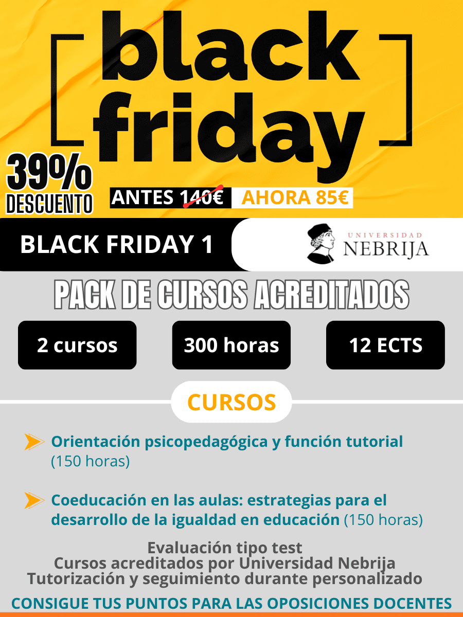 Todos los cursos de este pack cuentan con el reconocimiento de la Universidad Nebrija y son, por tanto, VÁLIDOS EN OPOSICIONES AL CUERPO DOCENTE.